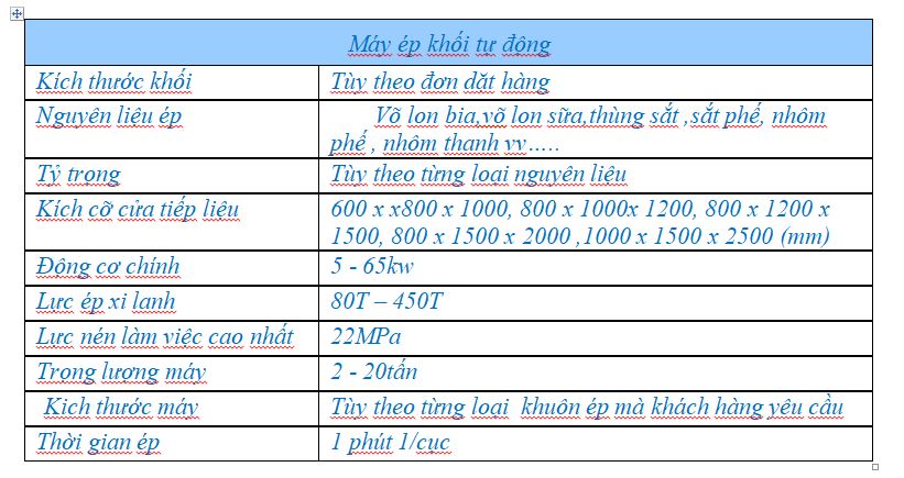 Tham khảo thông số 1 máy ép tự động, tuy nhiên chúng tôi có nhiều cỡ máy khác nhau: